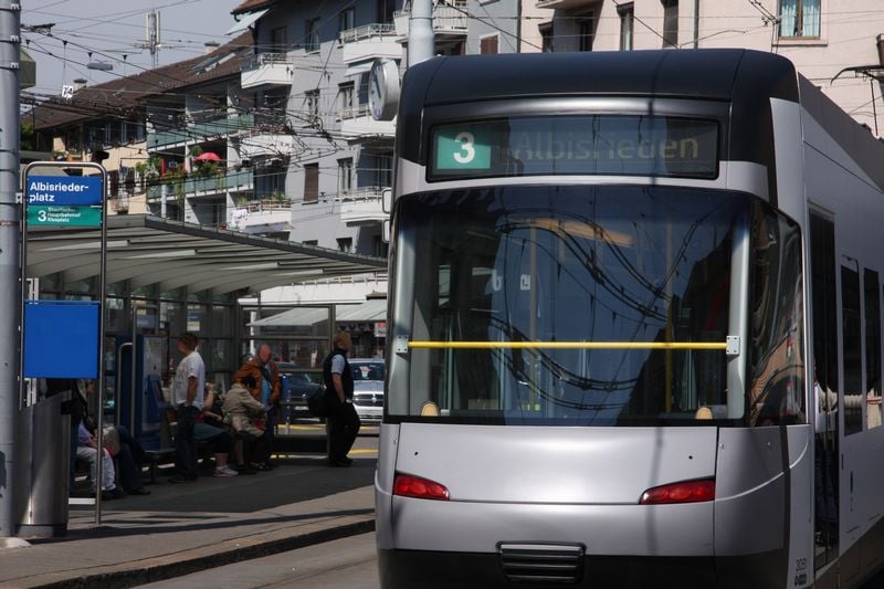 Tram Nr. 3 fährt zwischen Albisrieden und Klusplatz